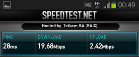 None the less, I am already impressed by the speed on offer by the Vodacom LTE data network in spite of not having full signal - LTE download test results are 46% faster than HSDPA and LTE upload test results are an amazing 432% faster than HSDPA (at the same location).